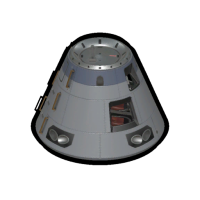 The "Gumball" can contain three Kerbals. Its design lends it to typically being placed at the top of a vessel. The shape of the pod shifts its center of mass towards the wider end, making it a stable choice for atmospheric entry.